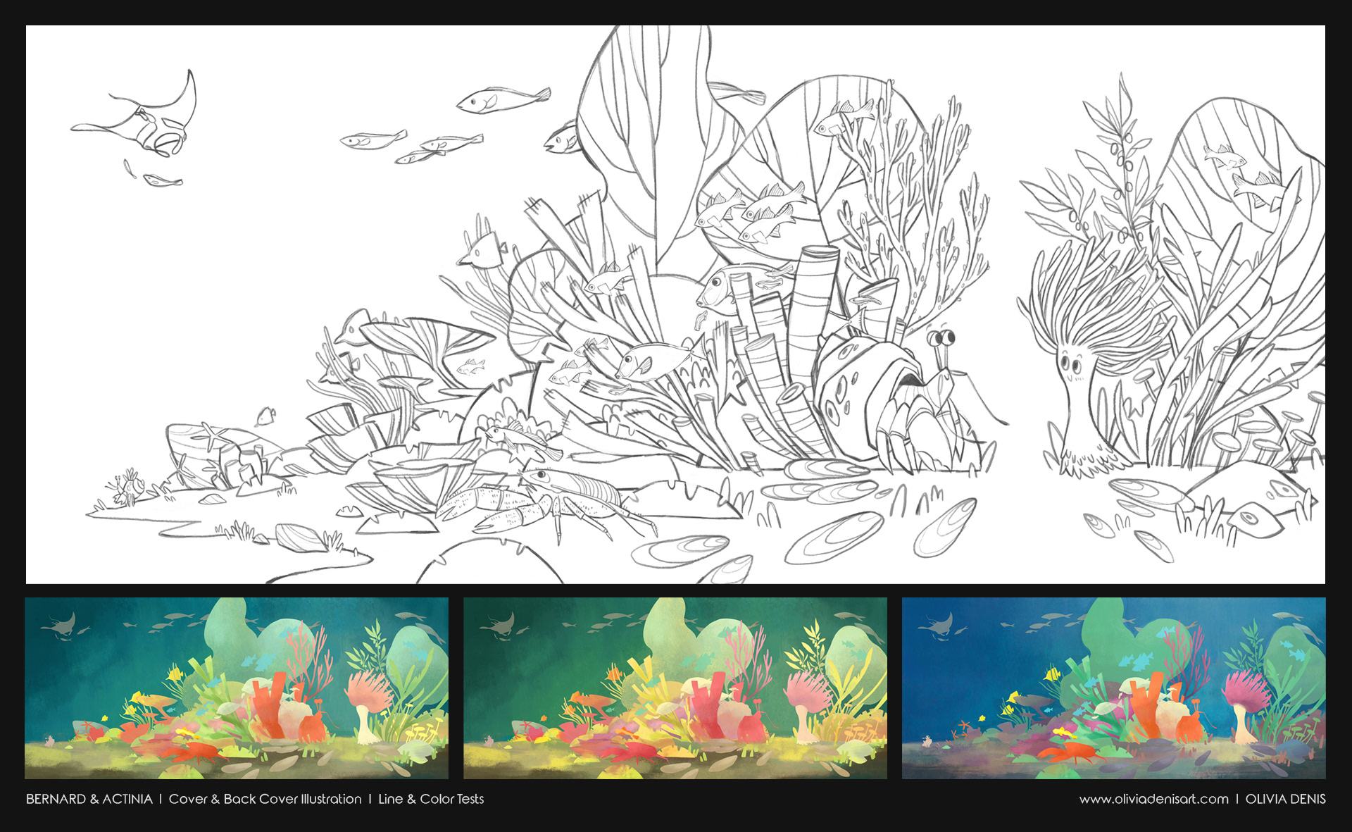Bernard et Actinia est un projet d'album jeunesse basé sur l'histoire d'amour entre un bernard-l'ermite romantique et une courageuse anémone de mer. L'histoire se déroule dans les eaux luxuriantes de l'océan tropical où vivent nos héros entourés de diverses espèces maritimes colorées.